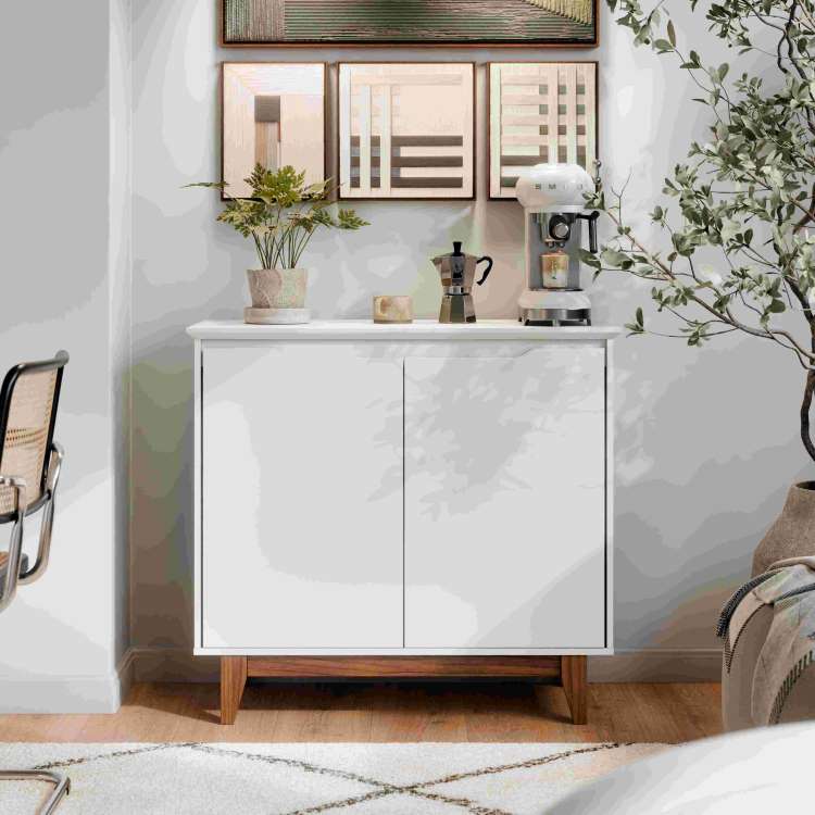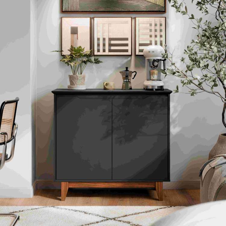 Pés de Madeira Maciça e Acabamento em Pìntura UV Semi-Brilho.