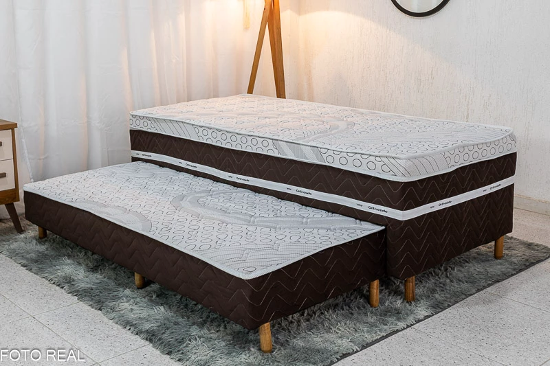 Cama Box Solteiro Livina Molas Ensacadas + Cama Auxiliar Orthoside