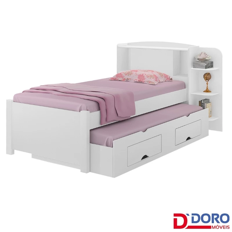 – Cama auxiliar com duas gavetas de abertura total de 40 cm