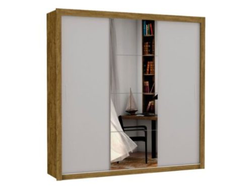 O Guarda Roupa Veneza Plus com 3 portas de correr, 2.08m de altura, 1.85m de largura e 0.46cm de profundidade, combinado com 4 gavetas, 4 prateleiras e 3 cabideiros, deixa o produto com uma divisão funcional capaz de proporcionar ao cliente acomodar todas as suas roupas de maneira mais organizada e com mais visibilidade.