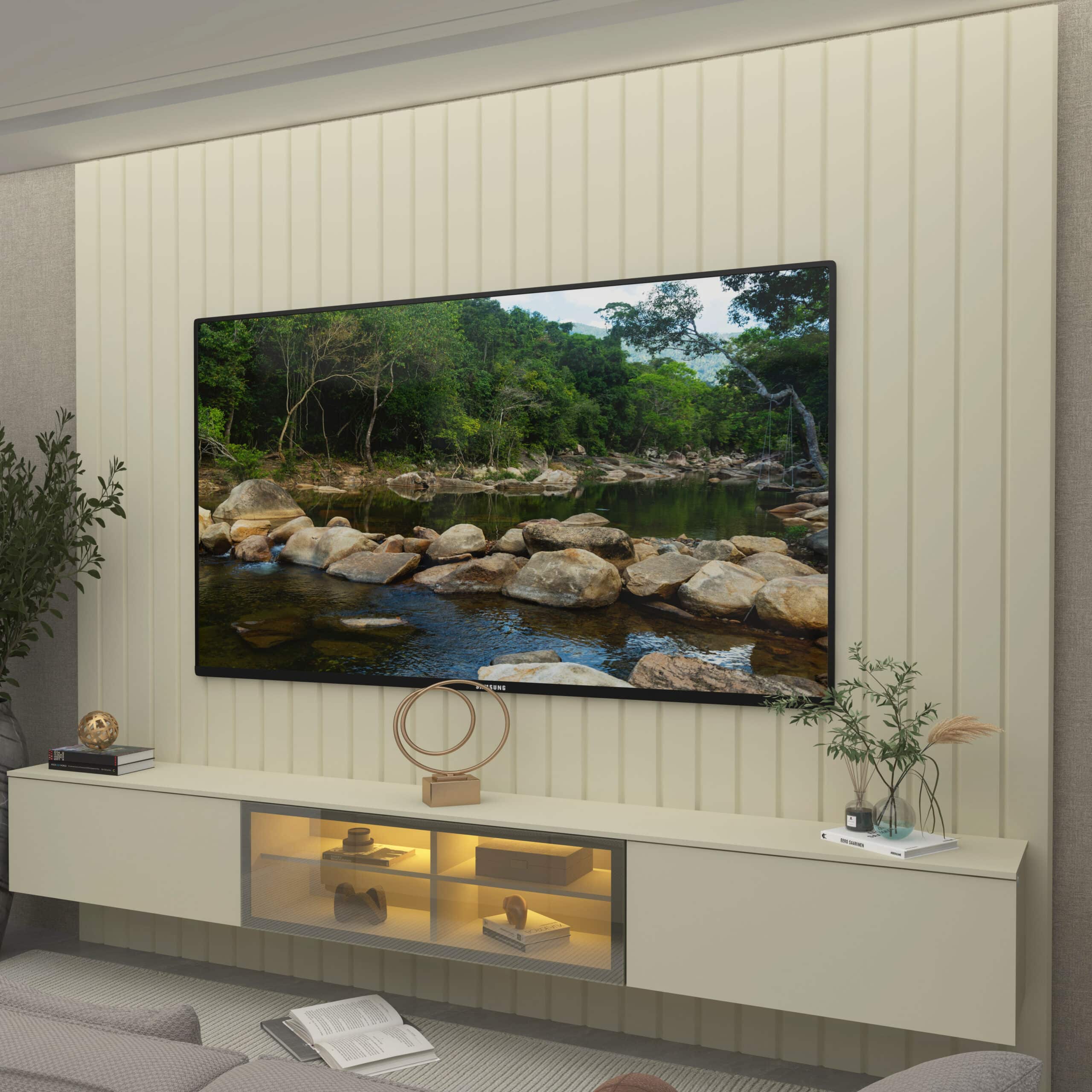 – Iluminação LED em tom quente, que valoriza o ambiente e cria uma atmosfera aconchegante