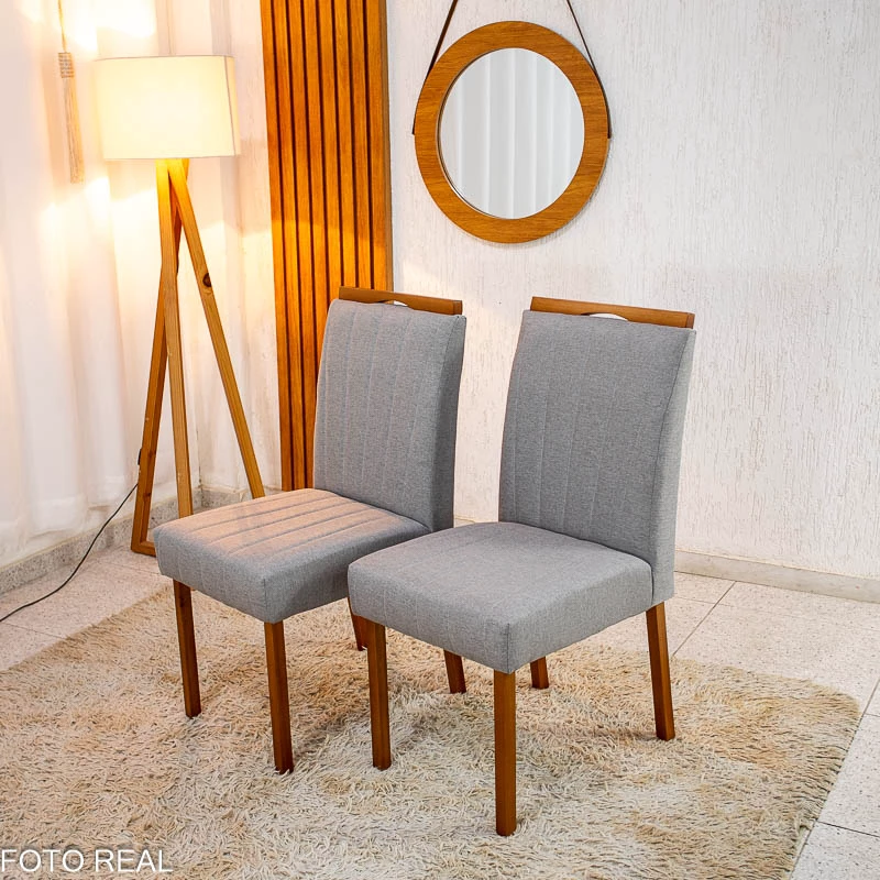 Kit 2 Cadeiras Pérola Mel Laminado/Linho Bege 1000 – WJ DECOR