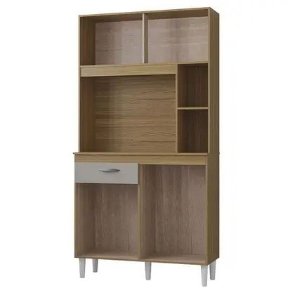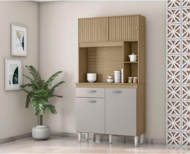 Estrutura 100% MDP, 2 Portas de Bater com Dobradiças Metálicas, 2 Portas de Correr , 1 Gaveta com Corrediça Metálica, 1 Prateleira Extermna, Puxadores Plásticos Metalizados Prata e Pés Pláticos Rígidos.