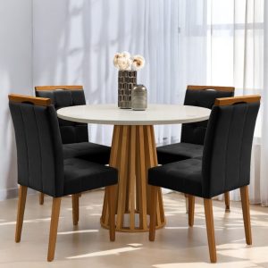 Mesa de Jantar Tampo Vidro Off 120×80 4 Cadeiras Madeira Maciça
