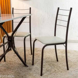 Mesa Rio Base Cabo Frio Marrom Tampo Pedra Off 100×60 4 Cadeiras Assento Creme – Teixeira