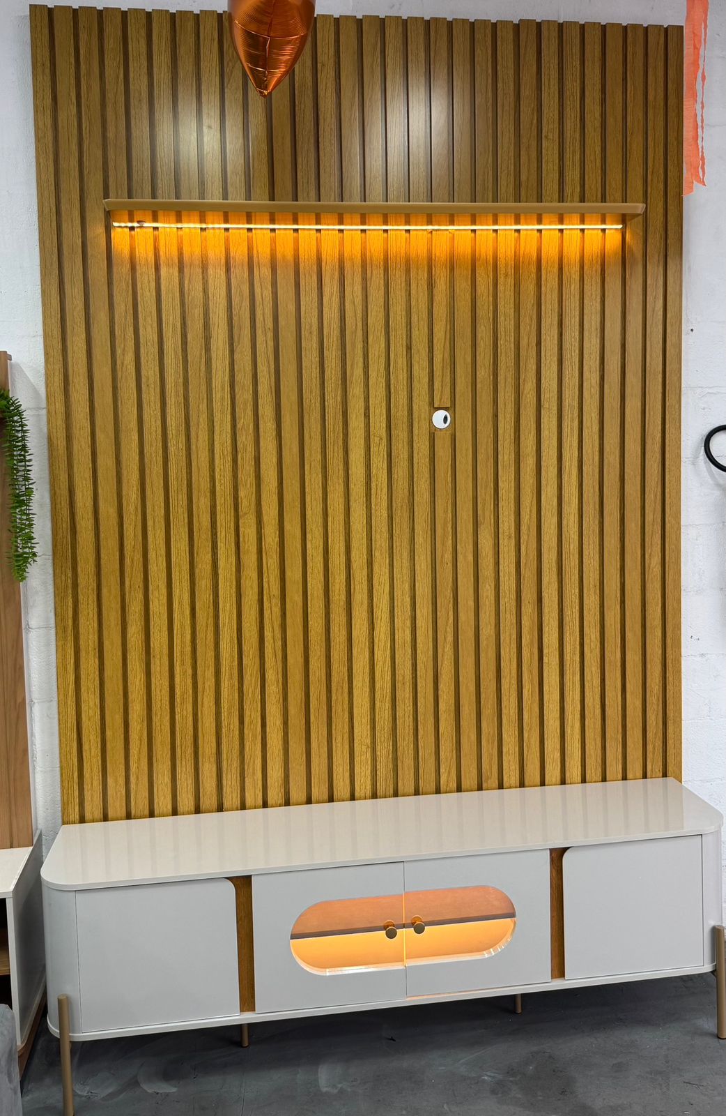 Painel Nobre Larg. 1.85m + Rack Requinte Larg. 1.72m C/LED Naturale/Off Gelius