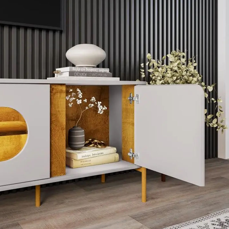 Rack Bancada Juquehy Larg. 1.80m Off/Nature C/LED para TV até 75″ – Bechara