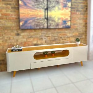 Rack Nobre Larg. 2.10m Off/Naturale C/ Led 100% MDF para TV até 70″ – Gelius