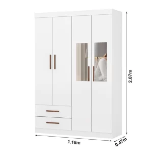 Roupeiro Solteiro Hercules Branco 04 Portas 02 Gavetas C/Espelho e Pés Larg. 1.18m – Carioca