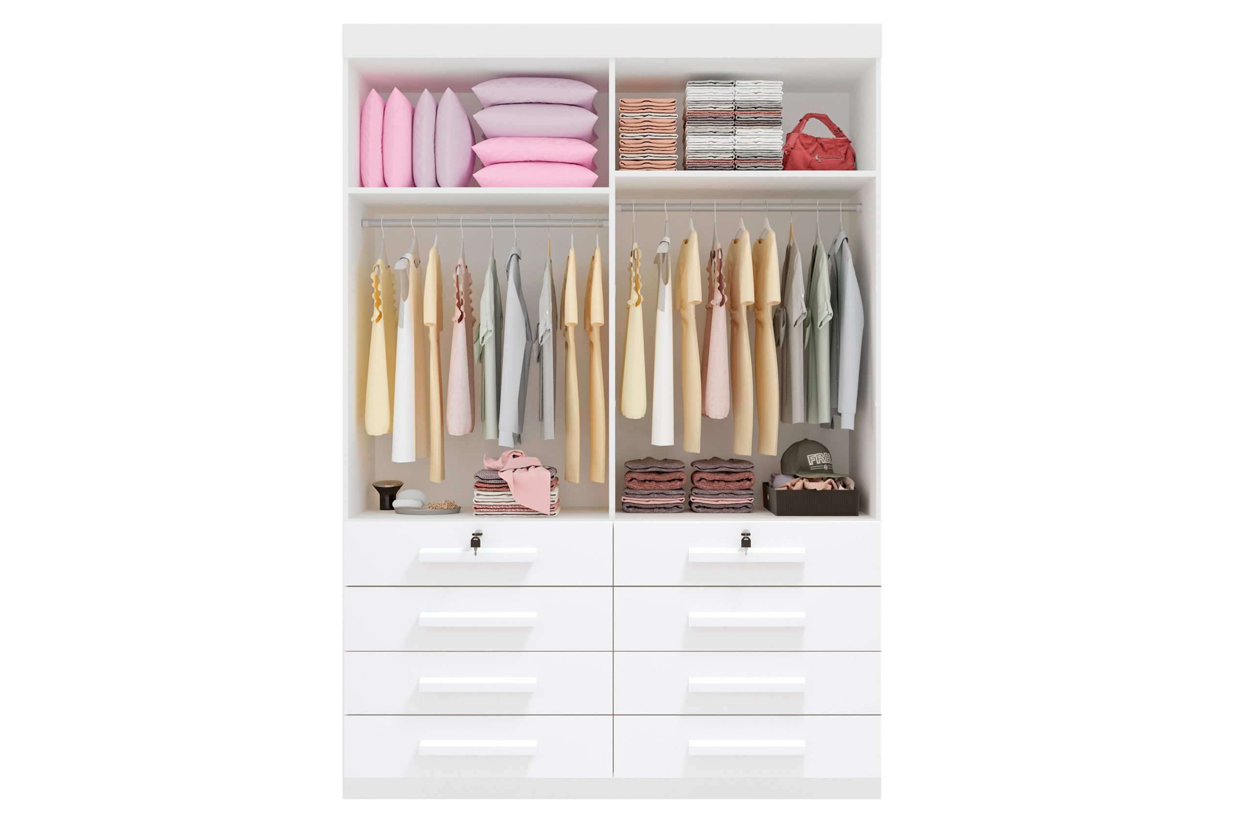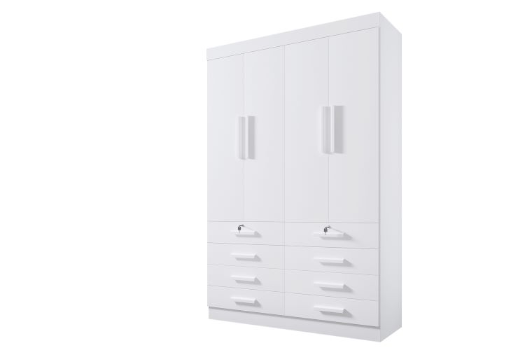 4 Portas de Bater com Dobradiças Metálicas, 8 Gavetas com Corrediças Telescópicas,