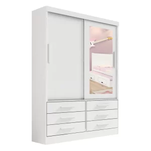 Roupeiro Solteiro Merídian Branco 2 portas c/ 1 Espelho 6 Gavetas Larg. 1.35m – D Doro