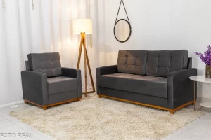 Sofá Áustria 3 Lugares + Poltrona Áustria Veludo